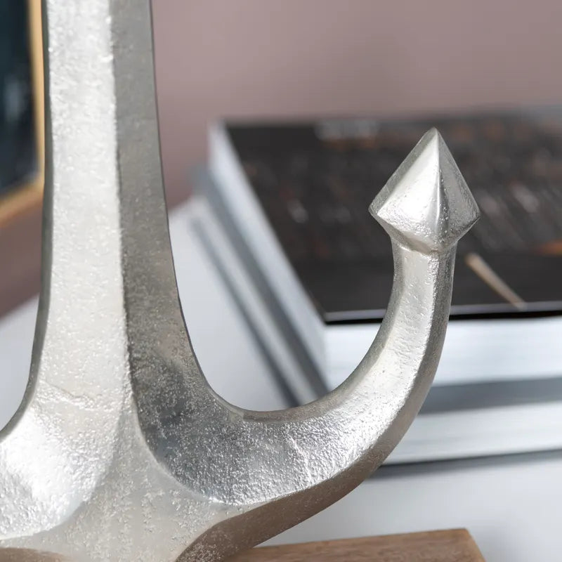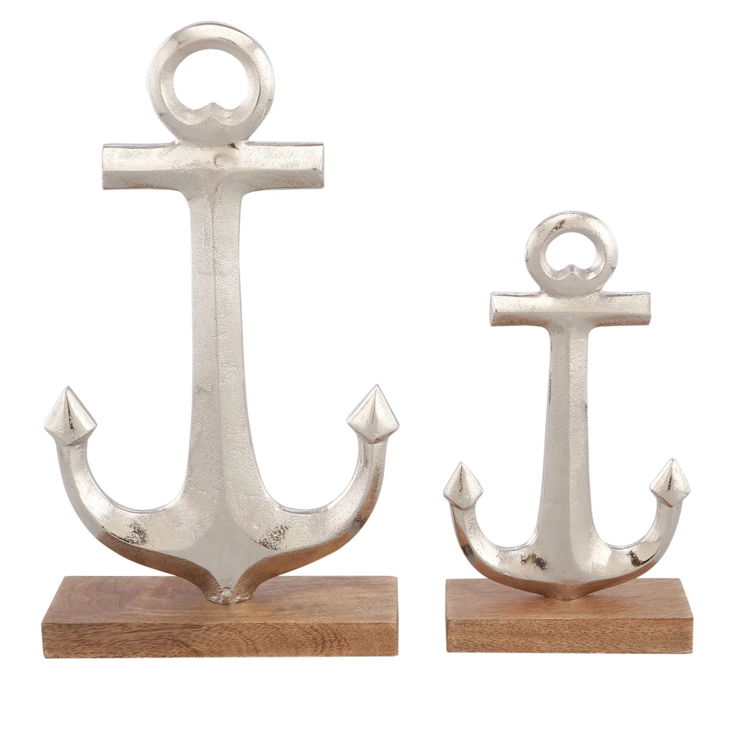 The Anchor Statues come in a set of two and are made from aluminum with a silver finish. They are made in the traditional shape of ship anchors and are mounted on medium brown finished wood. These statues will add beauty to your coastal style home decor or included in a special display for your favorite sailor, Navy or Marine service person. These statues would make a perfect retirement gift for your boating enthusiast.