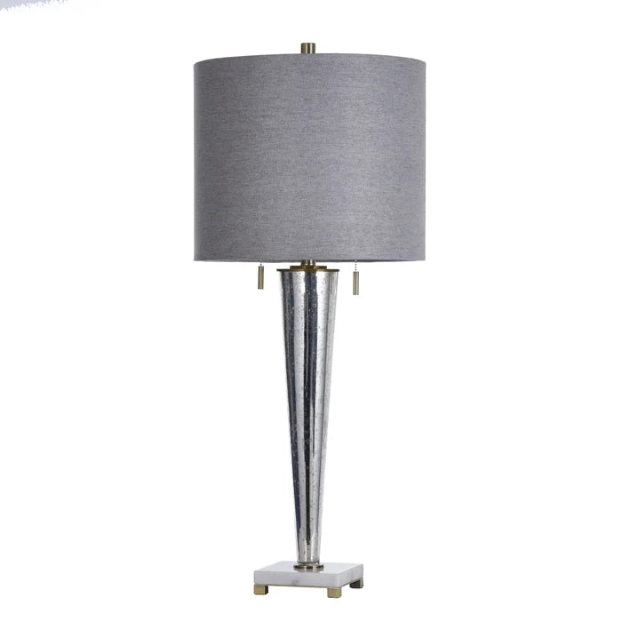 Transitional Pillar Design Glass Body Table Lamp with Marble and Metal Base