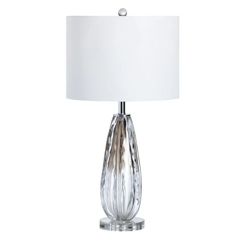 The Bellamy Table Lamp garners unique visual interest with its clear wavy glass form that is highlighted with a sepia core. Fitted with a linen shade, this lamp easily elevates your space with an eclectic yet refined look and feel.