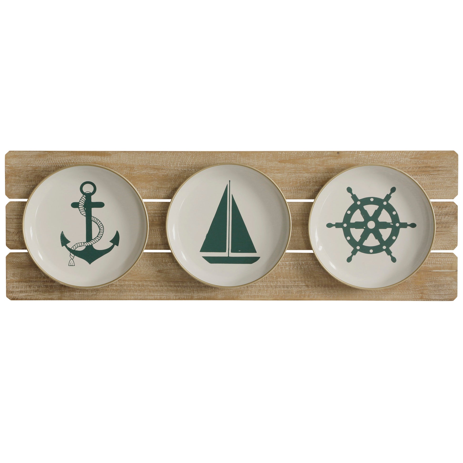 Nautical Setting | Wooden and Metal Material Wall Hanging with Painted Coastal Designs