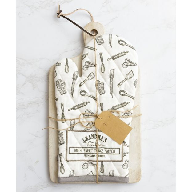 Cutting Board 14" H x 8" W, Oven Mitt 12.5" H x 7" W