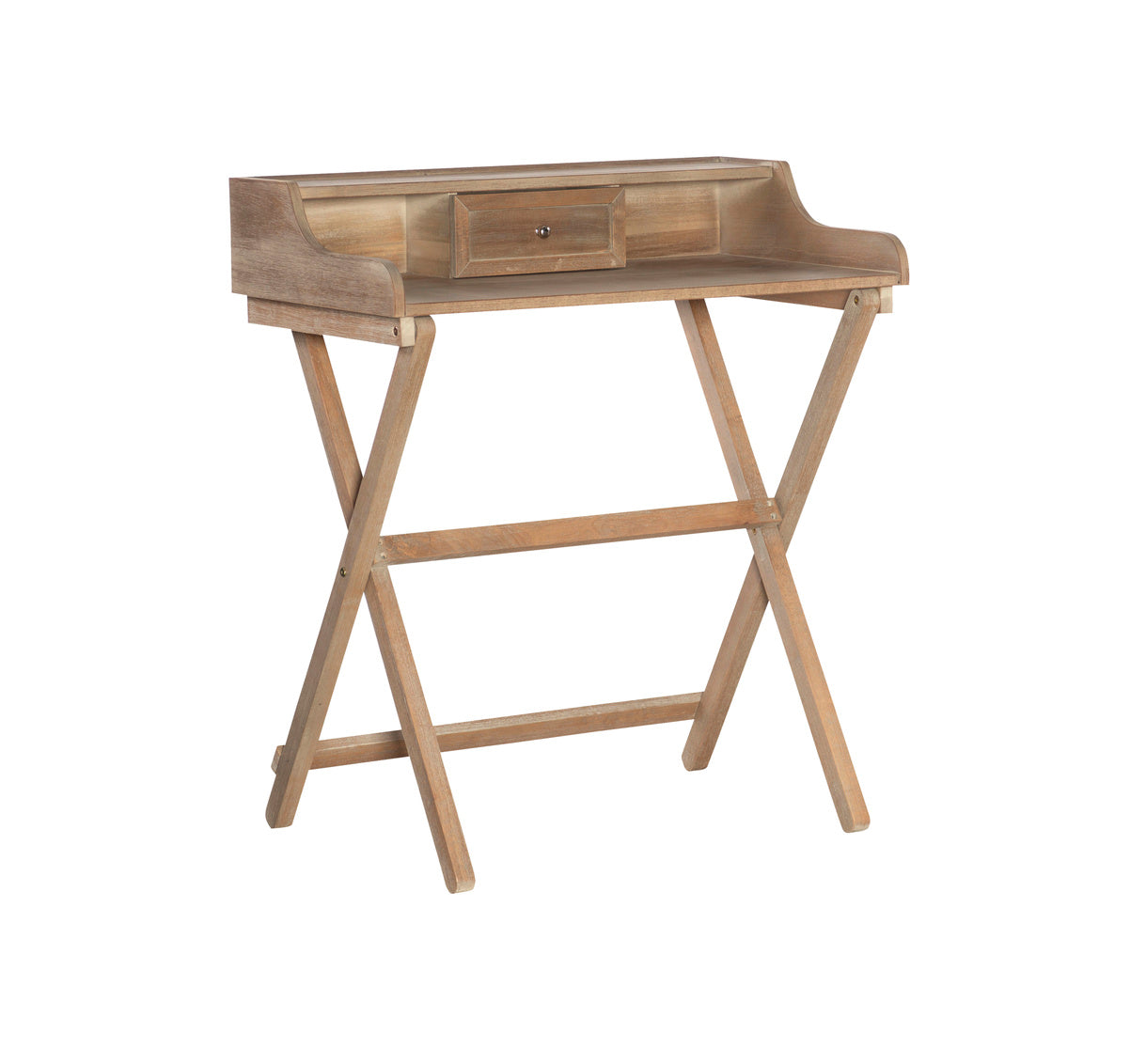 This folding desk is perfect for adding work space to any area of your home. The spacious work top makes finishing homework, studying or writing comfortable. A single storage drawer is perfect for keeping small work necessities close at hand. When finished, simply fold up the desk and store to save space when needed. The rustic brown finish is an easy neutral that complements a variety of existing decor styles.