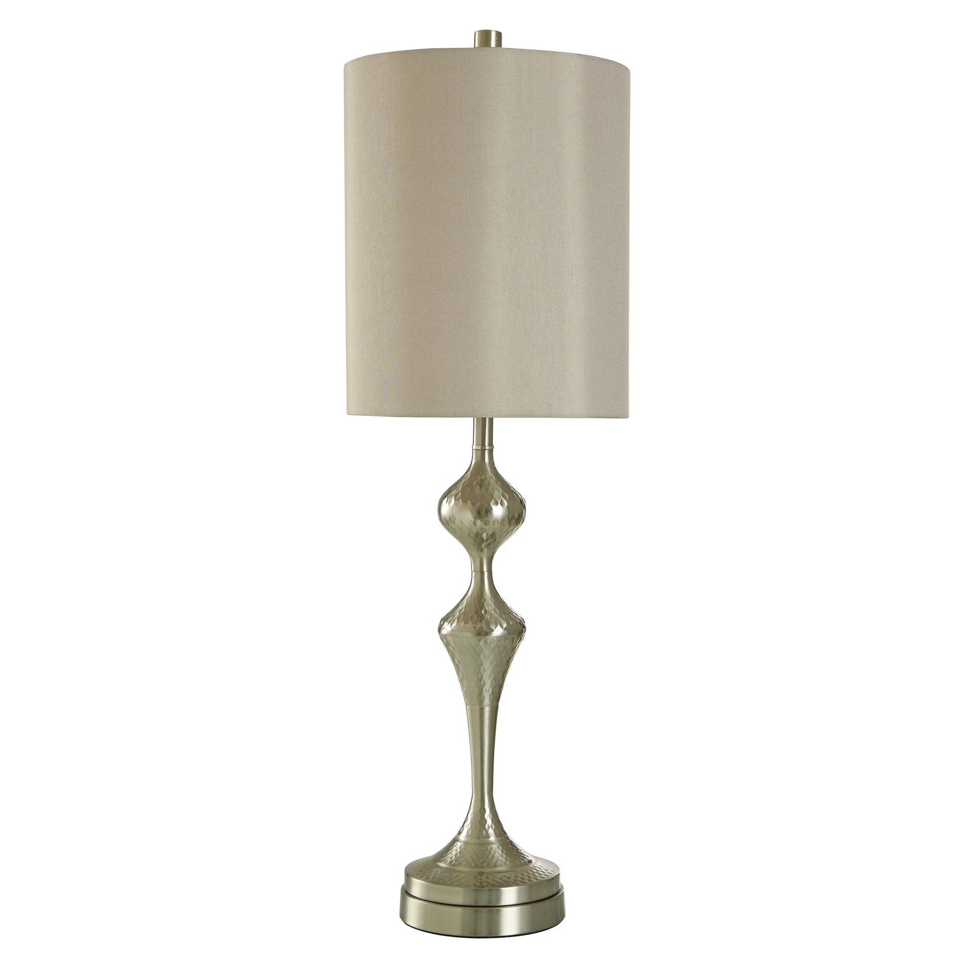 Modern Table Lamp with Net Patterned Brushed Nickel Finish