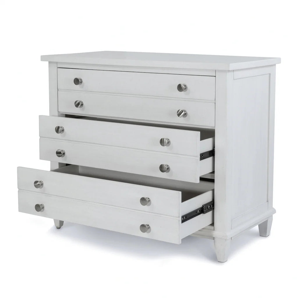 Finish: Translucent White Finish w/ Soft Grey Glaze