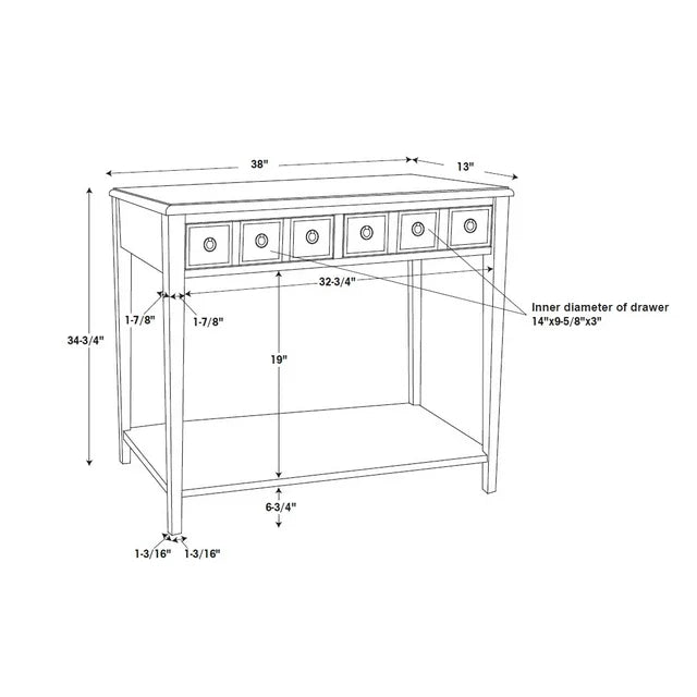 Designed with smaller spaces in mind, this slim line console serves as a stylish accent in your foyer, living room or under a wall mounted TV. The slender silhouette is equipped with two drawers to easily store small essentials, while a bottom shelf is perfectly sized to show off your favorite books or greenery. Round, antique bronze metal drawer pulls and four tapered legs add a distinctive touch to this cottage-inspired look.