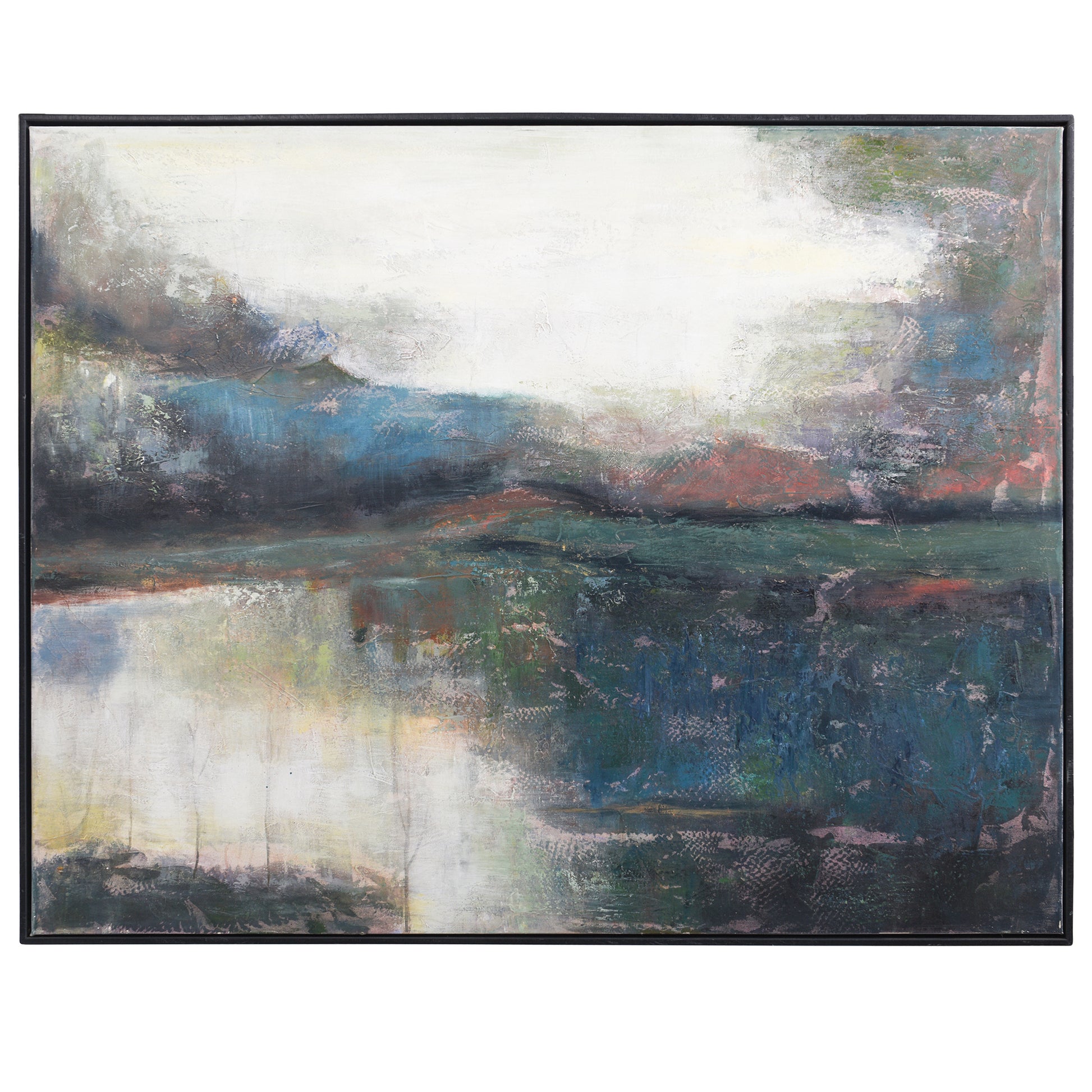 46w X 36ht X 2d | Hand Painted Oil on Linen | Peaceful Blue Abstract Landscape