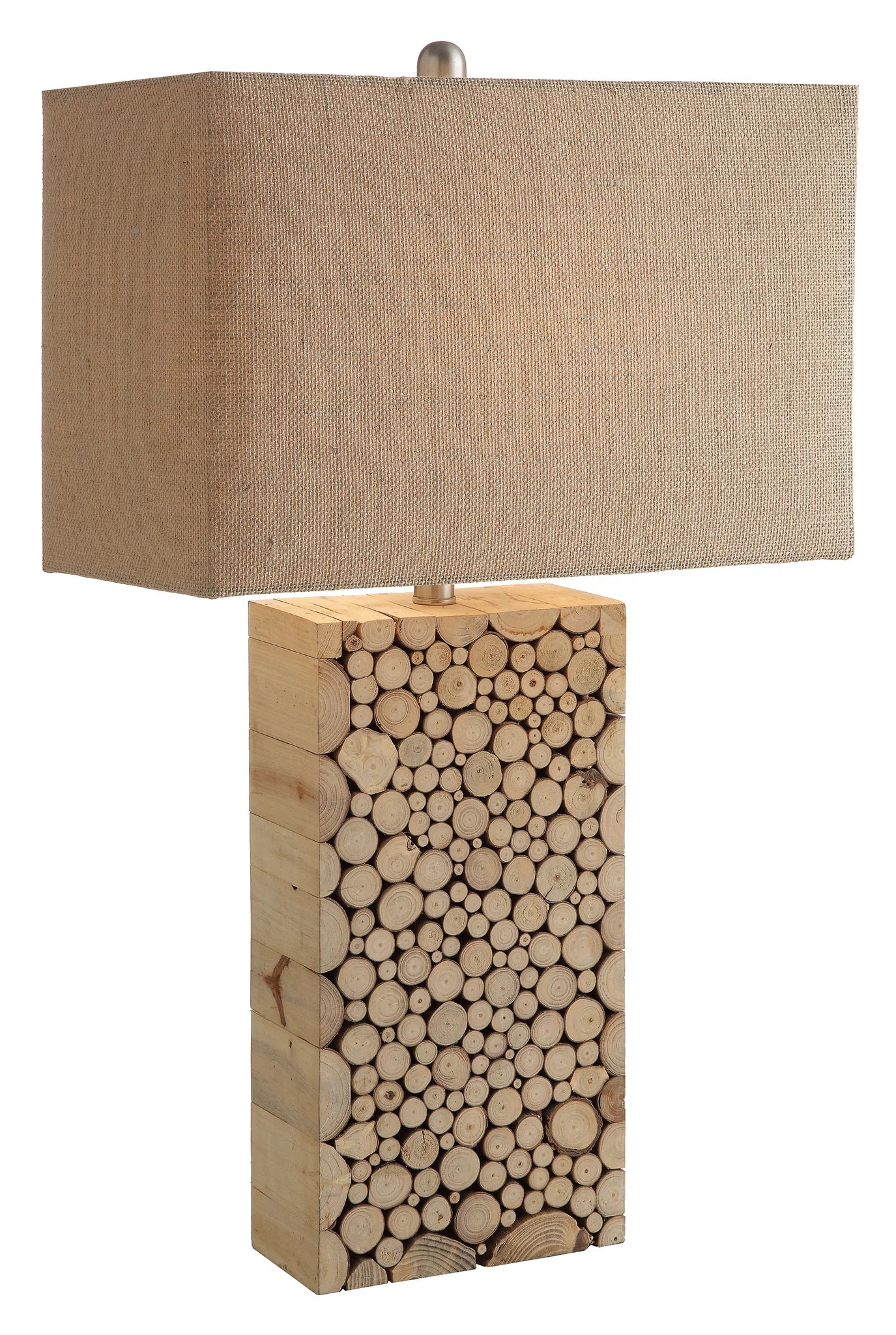 This rustic style Stacked Wood Table Lamp features natural twigs stacked on top of each other. The natural wood slices and beautiful lamp shade are sure to make a statement in your bedroom, office, living room or dining room.