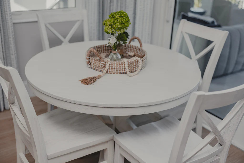 - Whitewashed Finish: Provides a charming, weathered look that enhances the table's rustic appeal.