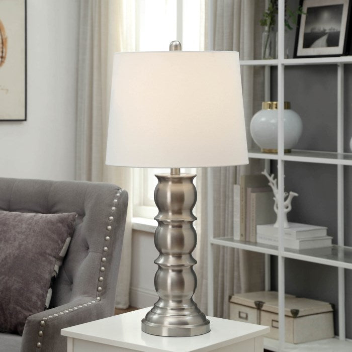 Turned Brushed Steel Table Lamp