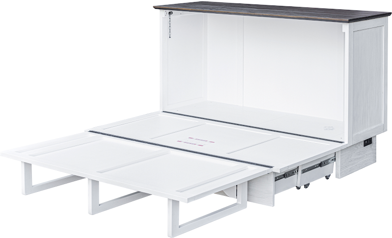 The Tuscany Sleep Cabinet brings versatility to any room in your home! Quality-built for function and style, this sleep cabinet enhances your bedroom or guest room with its two-tone finish. The cabinet front has hand-placed slats on each of the three front panels and a queen-size bed easily pulls out with a telescoping mechanism and the cut-out handle on its recessed base.