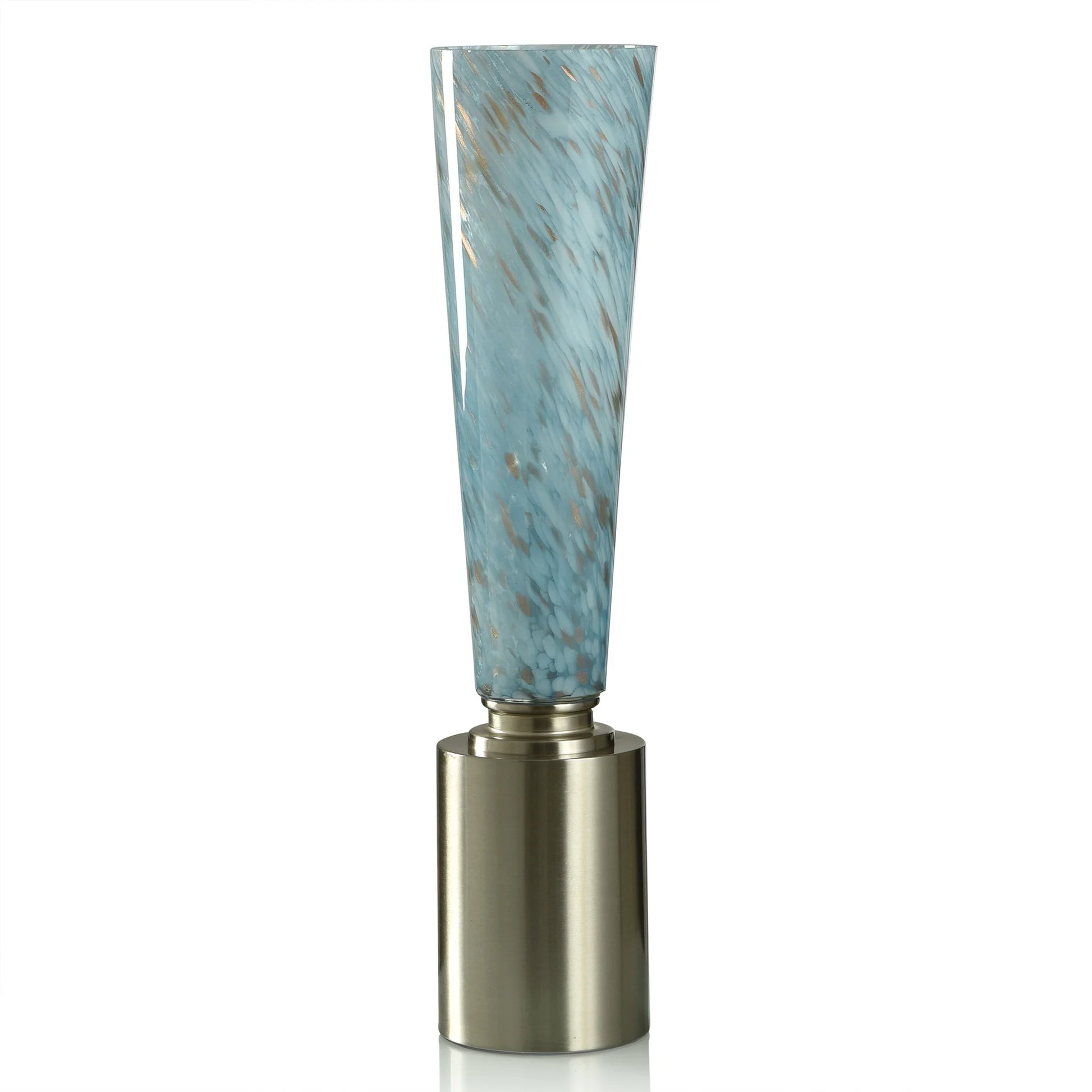 Modern Brushed Steel Uplight with Blue and White Patterned Shade
