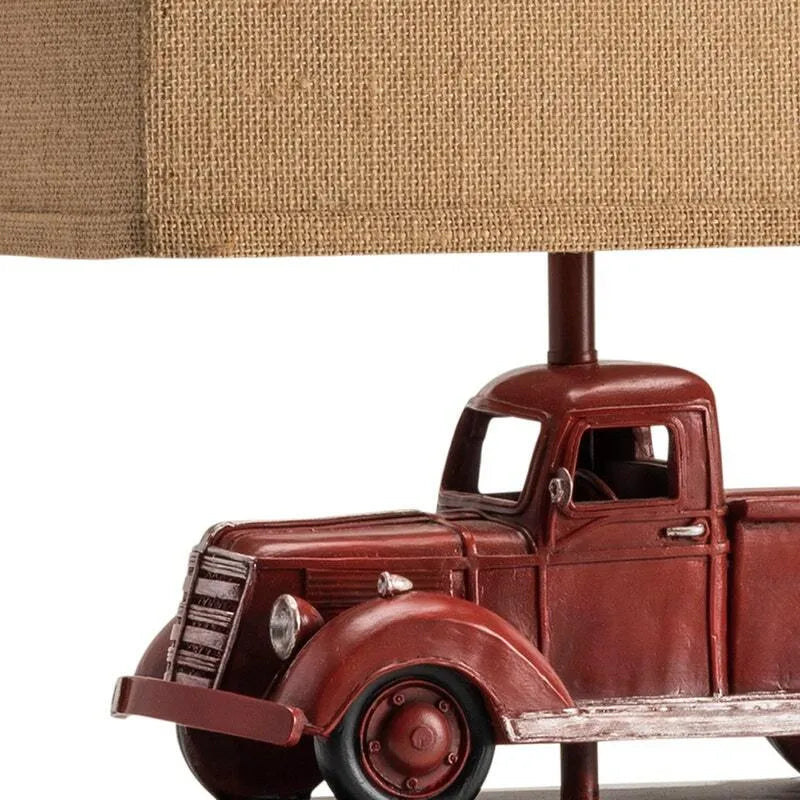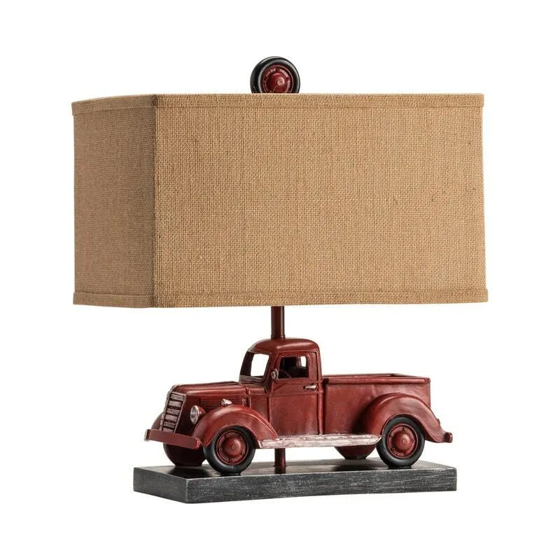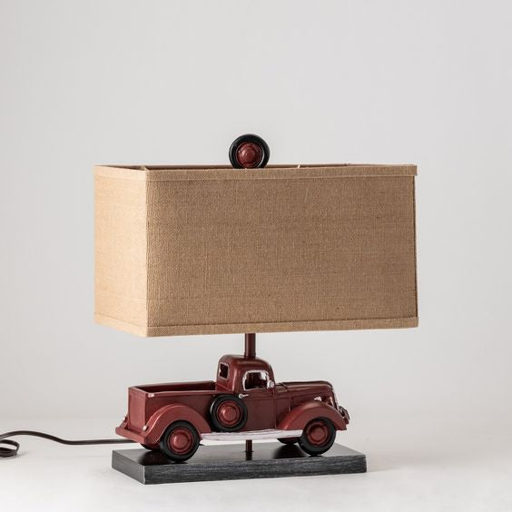 Let the kids dream about future drives across the country in an old rustic pickup truck with the Welltraveled Table Lamp. The base is a cast resin replica of one of those nostalgia-inducing trucks, bright red like all old trucks should be. On top the square-edge lampshade leaves enough room on the nightstand for other needed accessories, while muting the reading light.