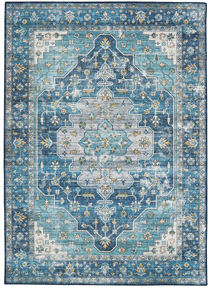WASHABLE SARIAH TEAL AND IVORY 5X7