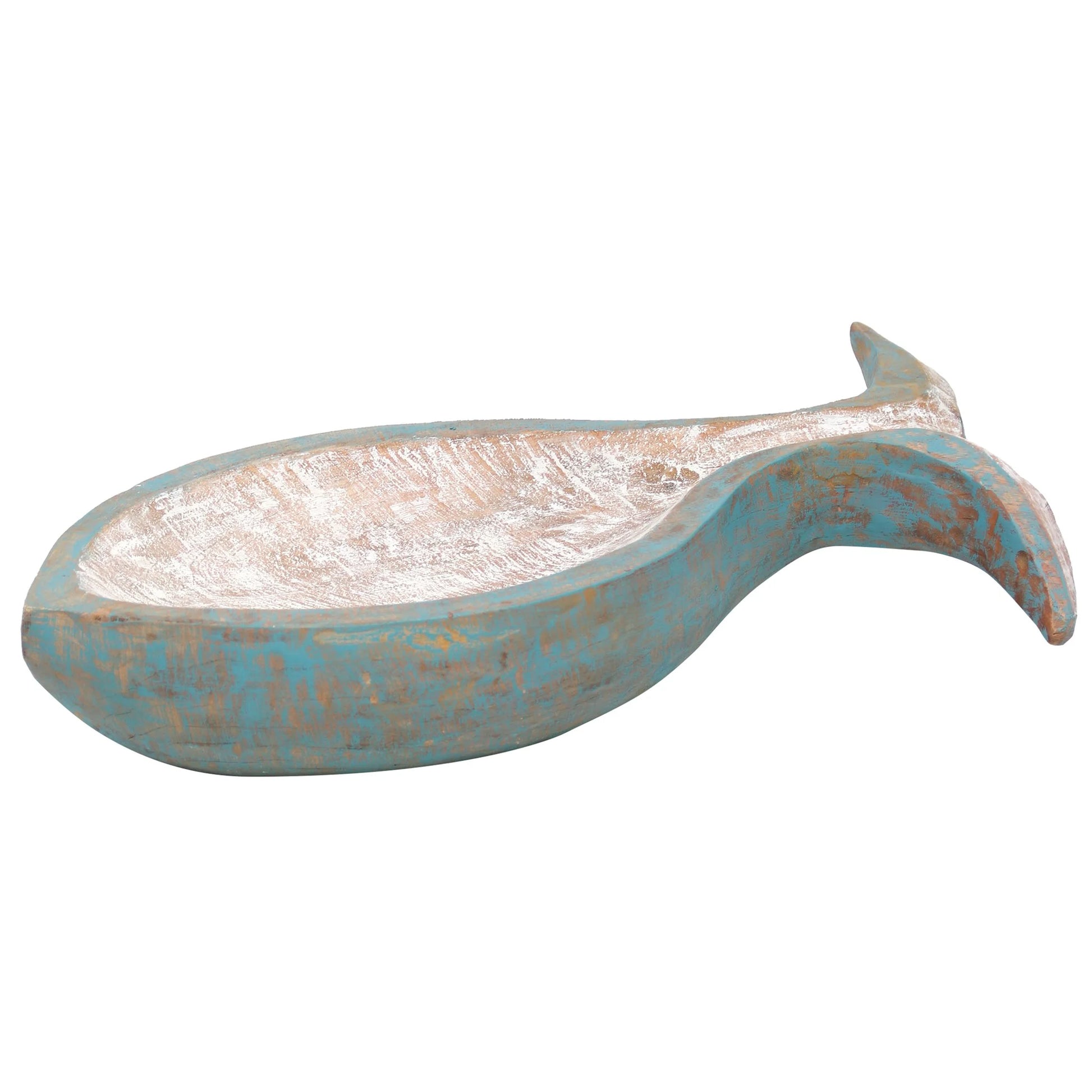 WASHED BLUE Carved Wooden Fish Shaped Bowl