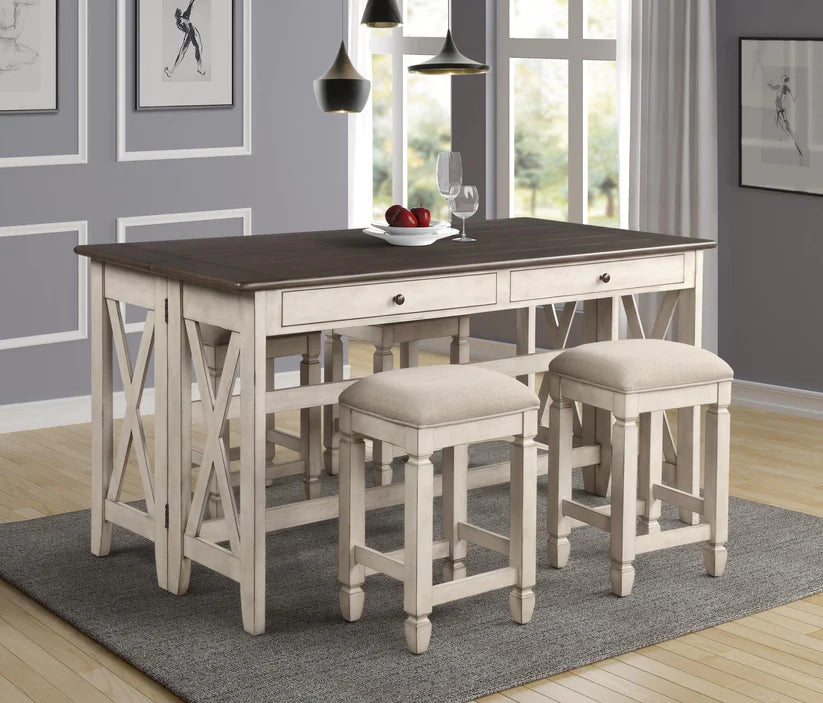The Waverly Counter Dining is the perfect solution for intimate meals. Its compact size accommodates seating for four, and with the drop leaf version, seating can be increased to up to 8.