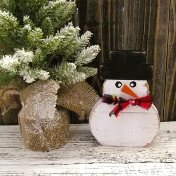 WOOD SNOWMAN SHELF SITTER